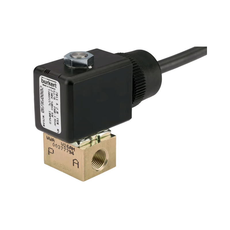 شیر برقی بورکرت مدل Type 7011 یک شیر پلانجری مستقیم‌کار است که برای کنترل دقیق جریان گازها و مایعات طراحی شده است.این شیر با ساختار جمع‌وجور و مقاومت بالا در برابر فشار تا 42 بار، یکی از گزینه‌های مطمئن برای سیستم‌های صنعتی، تجهیزات پزشکی، آنالیز مایعات و حتی کاربردهای سوختی است.جنس بدنه در نسخه‌های مختلف از برنج (Brass)، استنلس استیل 1.4305 (AISI 303) یا پلی‌آمید (PA) ساخته شده است و با آب‌بندی EPDM یا FKM سازگاری بسیار خوبی در برابر سیالات خنثی، هوا، روغن و گازهای فنی دارد.