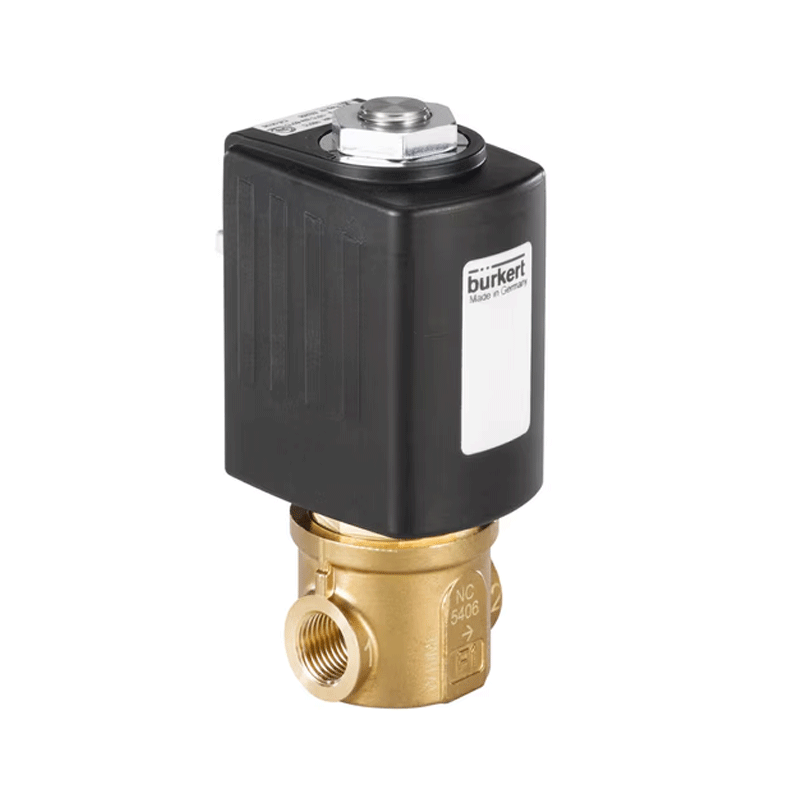 شیر برقی Bürkert Type 5406 یک شیر پیستونی سرووکنترلی 2/2 راهه است که مخصوص کاربردهای سوخت مایع (Heating Oil, Shipping Fuels، FAME، روغن کلزا) طراحی شده و مطابق استاندارد DIN EN ISO 23553-1 به عنوان شیر قطعکننده ایمنی سوخت (Safety Shut-off Valve) شناخته میشود.این شیر با بدنه برنجی یا استیل 1.4581، آببندی PTFE + FKM و کویل کلاس H اپوکسی قادر است در دماهای ۰ تا ۱۶۰°C و فشار ۱ تا ۳۰ بار کارکرد مطمئن داشته باشد.